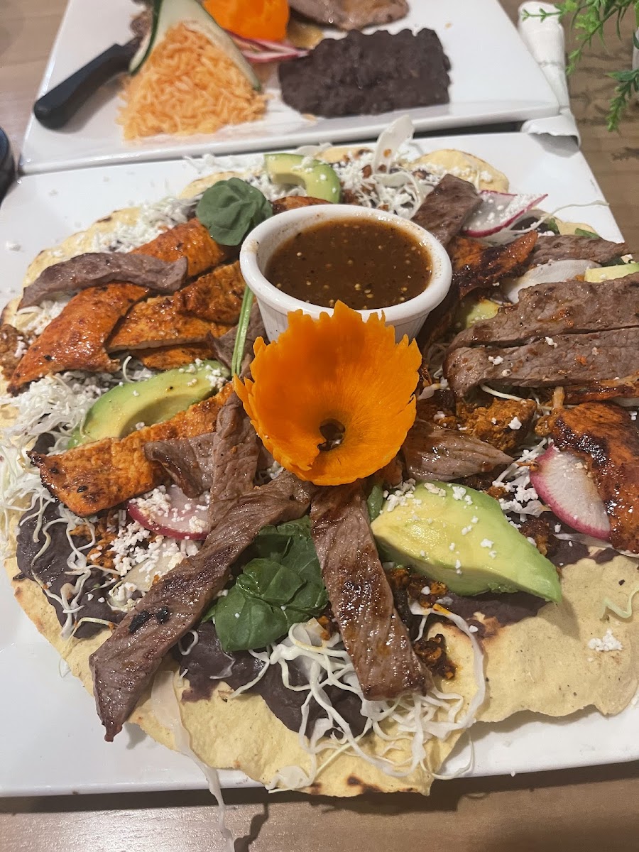 At Mezcalito, every dish is a celebration of Oaxacan culinary traditions. Their popular specialties include the Oaxaca's Favorite Rocky's Free Range Chicken, marinated with fresh herbs and served with your choice of exquisite mole, estofado, or mole verde. For a sizzling experience, try the Parrillada, a hot skillet platter featuring perfectly grilled chicken, pastor, wild prawns, and tasajo, complemented by sautéed onions, peppers, and melted Jack cheese. If you're in the mood for something wrapped in tradition, the Enmoladas – braised chicken snugly tucked in corn tortillas and drizzled with rich Mole Rojo – is a must-try.